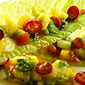 再裝盛於蘿蔓生菜上即可完成馬上食用喔^^~